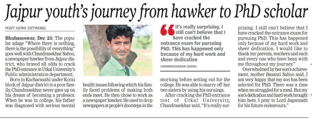 - Chandrasekhar Sahoo, a brilliant boy from Jaipur, needed a mobile phone for communication and studies doing his Ph.D. at Utkal University. With the advocacy of another GOV volunteer, Sai Debabtata, SNEHA support was able to step in and meet the need.