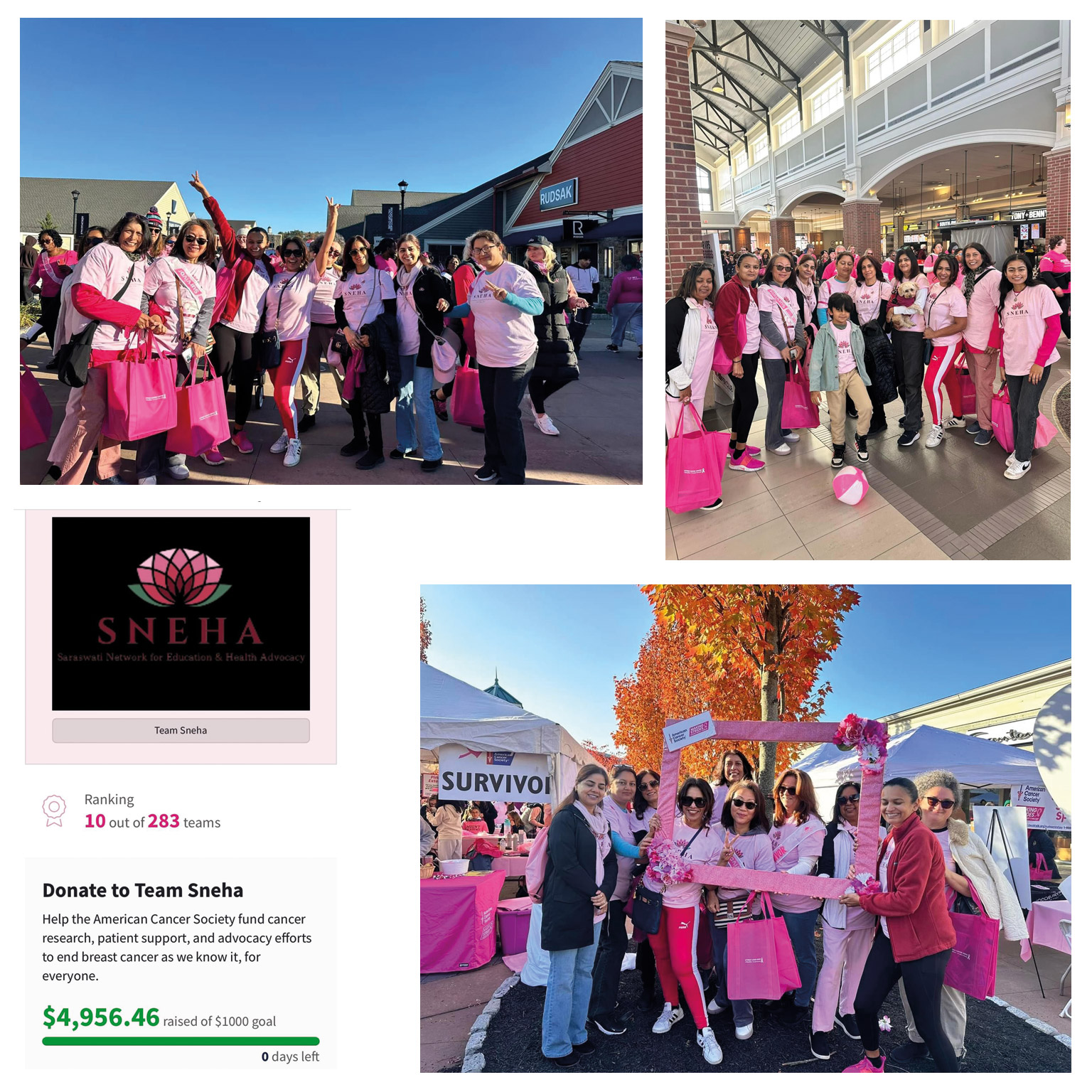 - Team SNEHA participated in Making Strides Against Breast Cancer of Hudson Valley, an annual event of the American Cancer Society